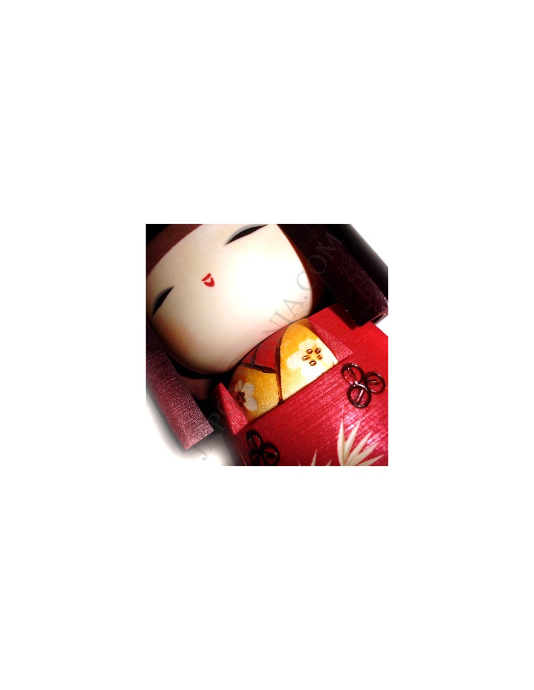 This lovely kokeshi doll is wearing such a michiyuki, adorned with flowers and autumnal colors.