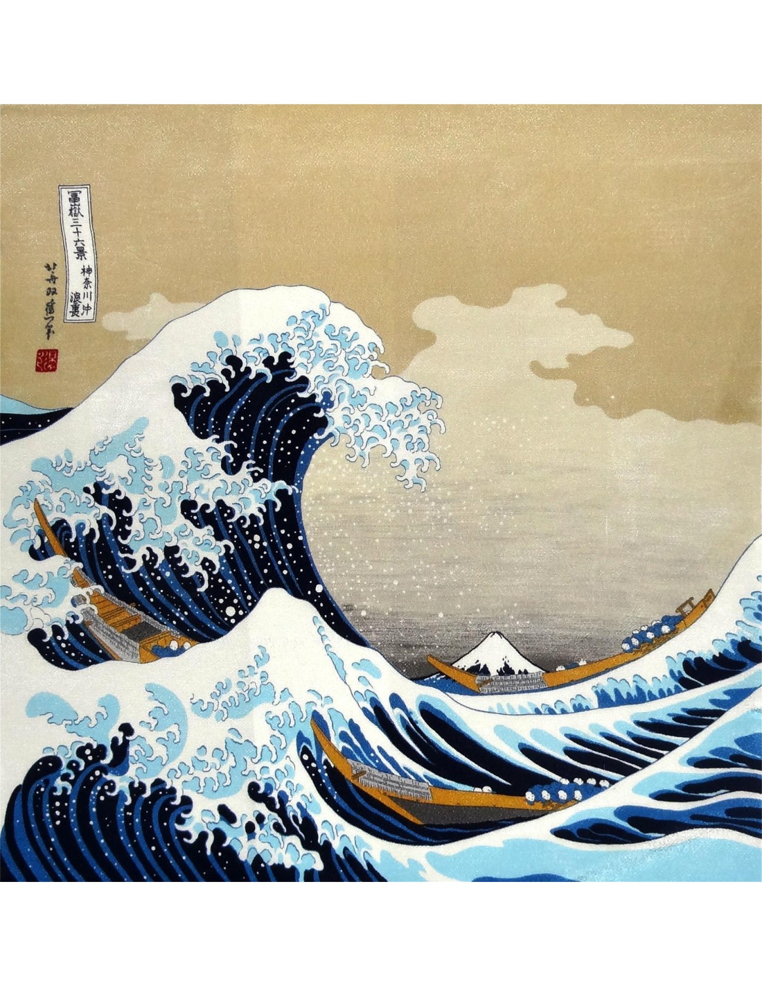 D'après "les trente-six vues du Mont Fuji" du maître d'estampes Katsuhika Hokusaï : la célébris-sime "Grande vague vue de la côte de Kanagawa".